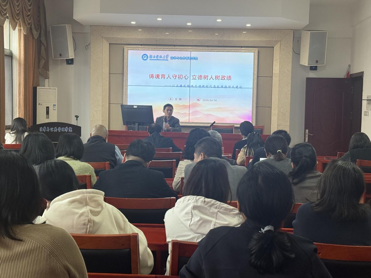 王明副院长以中共中央办公厅印发的《关于在全党开展树立和践行正确政绩观学习教育的通知》为切入点,系统阐述了正确政绩观与师德师风建设的内在逻辑。通过解读“立党为公、为民造福、科学决策、真抓实干”的总要求,阐明了正确政绩观是师德师风的政治根基;结合《新时代高校教师职业行为十项准则》和《关于加强和改进新时代师德师风建设的意见》,深入分析了师德师风建设的制度框架与实践路径;通过教育部公开曝光的违反教师职业行为典型案例,开展了警示教育,强调严守师德师风底线的重要性。