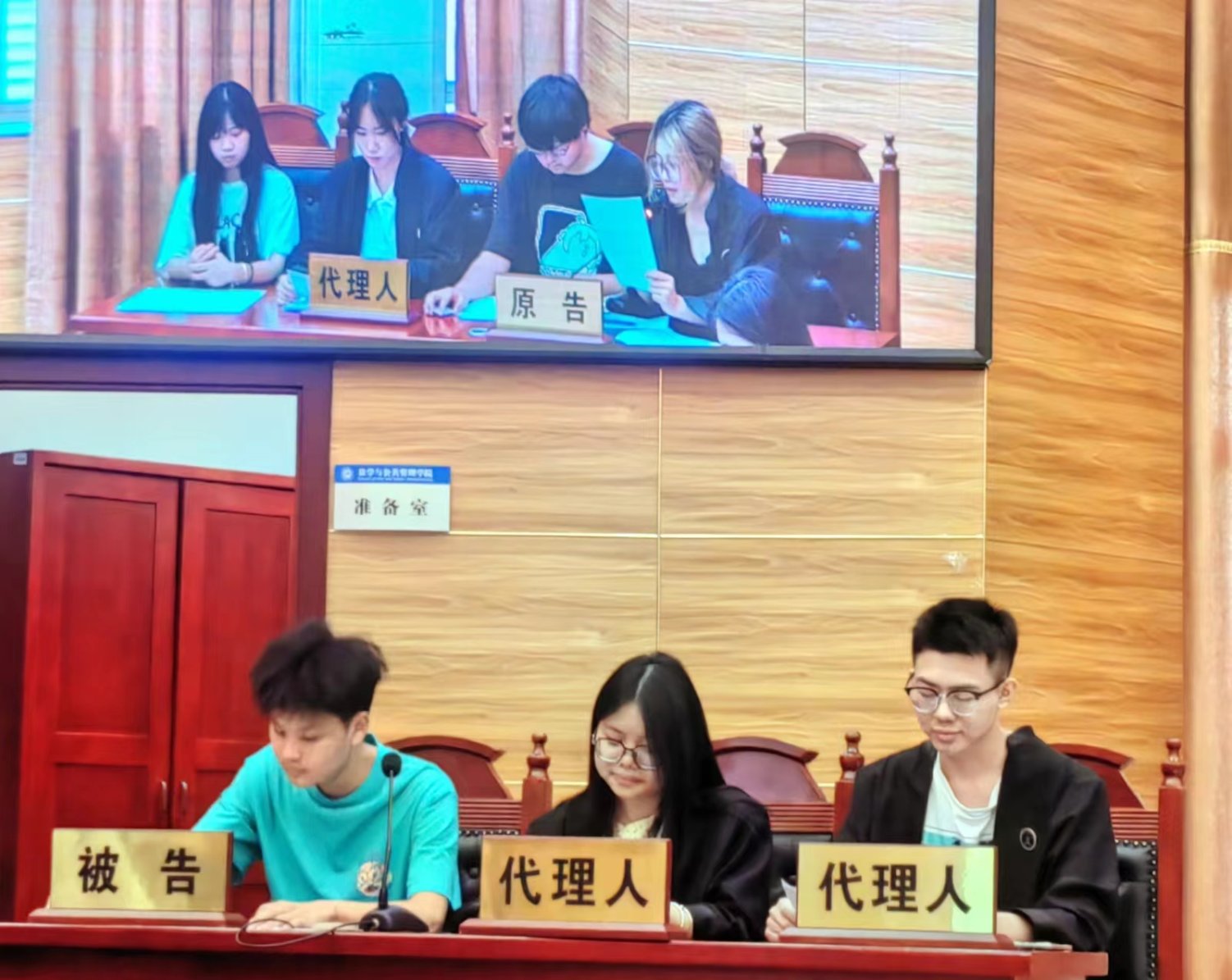 5月14日上午8点,23级法学5-6班、23级潇湘法学1-2班于立言楼模拟法庭开展民事诉讼法实践课——民事模拟法庭活动,法学系向明、左洪剑、张美玲、喻军等老师到场对活动进行了指导和点评。